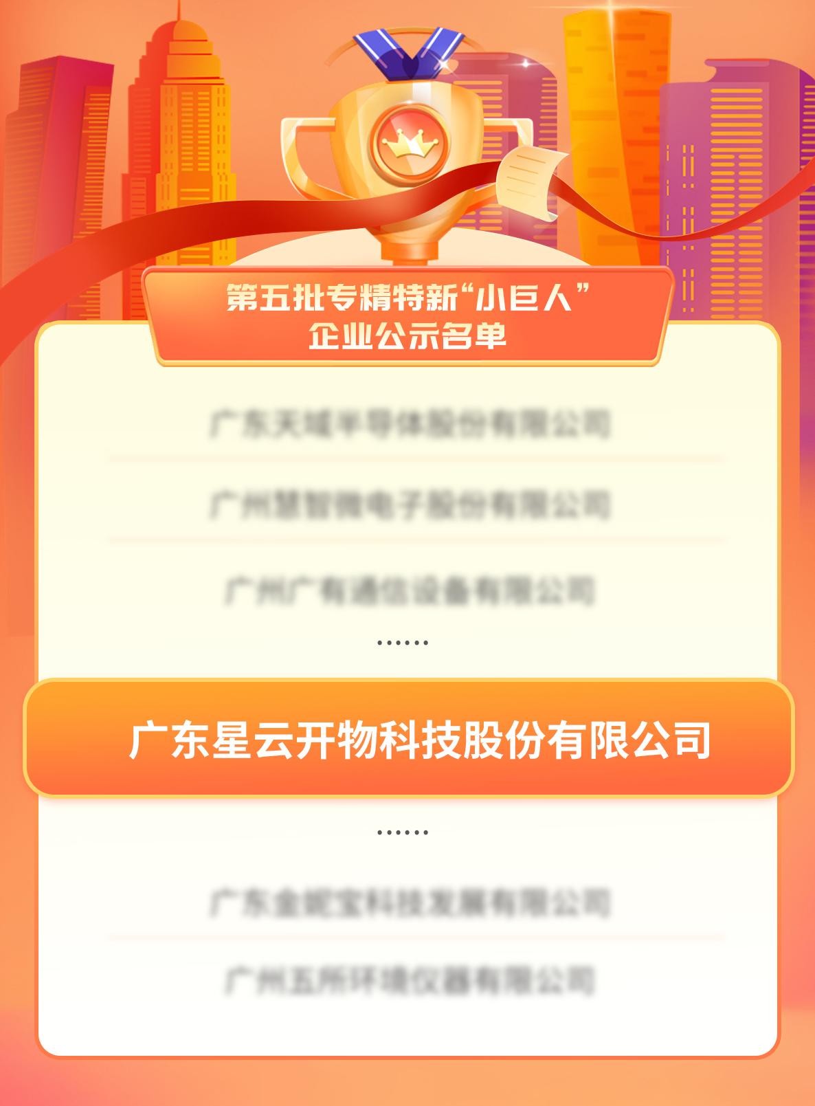 ? ? 7月14日,國(guó)家工信部發(fā)布了《關(guān)于廣東省第五批專精特新“小巨人”企業(yè)和第二批專精特新“小巨人”復(fù)核通過企業(yè)名單的公示》,廣東「星云開物」科技股份有限公司以優(yōu)異的綜合實(shí)力成功入選,榮列2023年國(guó)家級(jí)第五批專精特新“小巨人”企業(yè)公示名單。