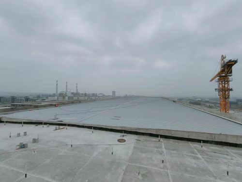 5月3日,隨著最后一塊壓形屋面板成功就位,由中鐵電氣化局集團施工的凱賽(太原)生物材料有限公司DN項目-340單元土建項目C區(qū)鋼結構屋面順利封頂。