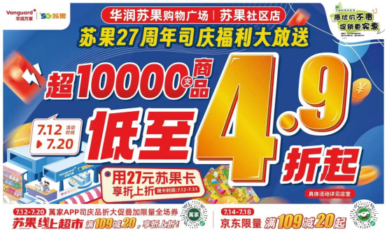 響應(yīng)政府促消費(fèi)擴(kuò)內(nèi)需,進(jìn)一步激發(fā)市場(chǎng)活力的號(hào)召。蘇果于7月12日-7月20日期間,將打造為期9天的司慶購(gòu)物節(jié),聯(lián)合百家重點(diǎn)廠商推出10000余商品4.9折起、會(huì)員超值換購(gòu)、跨界合作等一攬子促消費(fèi)舉措,同時(shí)賦能商品力,全方位升級(jí)購(gòu)物體驗(yàn),屆時(shí)將釋放新一輪消費(fèi)潛力。