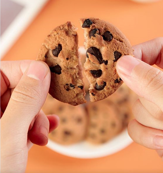 撕開獨(dú)立小包裝,就可以聞到濃郁的巧克力香氣,每一份里面兩塊餅干,每塊曲奇上面豆鑲嵌著滿滿巧克力豆。咬的時候可得注意,因為這個曲奇蘇到掉渣!一個不小心曲奇碎就會灑下來。細(xì)細(xì)咀嚼,酥脆的巧克力味曲奇和香醇的巧克力豆在口腔中碰撞出柔滑、醇香的火花,雙重口感翻倍美味!