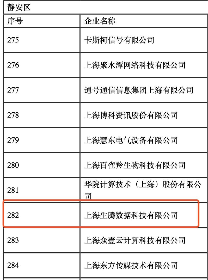 近日,上海市經(jīng)信委對外公布了2021年度上海市“專精特新”企業(yè)名單,合合信息旗下全資子公司上海生騰數(shù)據(jù)科技有限公司(以下簡稱“生騰數(shù)據(jù)”)成功上榜。
