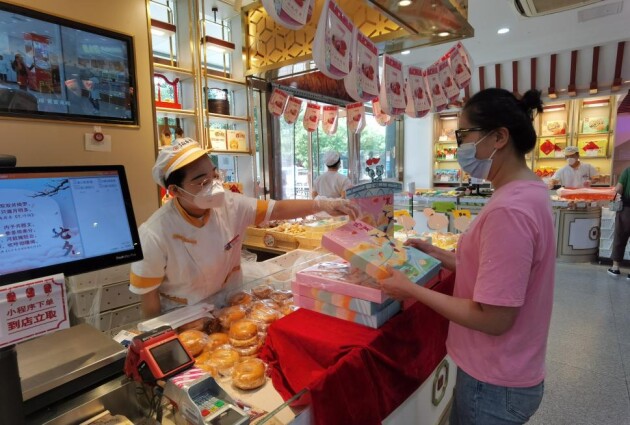 “去年這個(gè)巧果禮盒就特別火,差點(diǎn)兒沒(méi)搶到,這不是又快到七夕節(jié)了嘛,所以今天門店還沒(méi)開(kāi)門我就過(guò)來(lái)了,就是奔著這個(gè)禮盒來(lái)的?!痹诒本┑鞠愦逦挥跂|直門的“東城食尚店”里,一位女孩正在挑選著“巧果”糕點(diǎn)禮盒。據(jù)工作人員介紹,今年為了方便顧客選購(gòu),北京稻香村還上線了微信小程序,顧客可以通過(guò)線上下單巧果禮盒等產(chǎn)品,到店取貨,節(jié)約購(gòu)買時(shí)間。