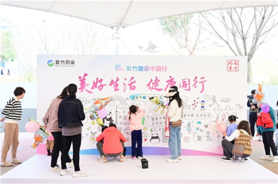 現(xiàn)場(chǎng)還設(shè)置了“涂鴉墻”和健康合影板,吸引了眾多參觀者打卡互動(dòng)。大家共同繪制的“涂鴉墻”上,留下了對(duì)親友及自己的健康祝福,而創(chuàng)意十足的健康合影板,記錄下諸多的歡樂瞬間……