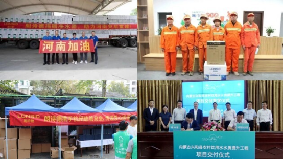 除了高考助力以外,朗詩德凈水器也曾積極參與過許多其他公益活動。2019年,朗詩德凈水器積極助力內(nèi)蒙凈水扶貧,憑借對復雜水質(zhì)的多年研究,為三千多戶水質(zhì)不達標的農(nóng)村人家,安裝上朗詩德L2凈水器,惠及農(nóng)戶上萬人;2020年,朗詩德為湖南省城步縣捐贈防疫物質(zhì);2021年7月,朗詩德公司在河南省發(fā)生特大暴雨后,幫助河南災后重建,捐贈價值上千萬的朗詩德凈水器,助力河南災后重建;同年9月,朗詩德凈水器通過莆田慈善總會、杭州慈善總會捐贈千盒愛心月餅,向醫(yī)護人員和一線勞動者送上這份獨屬于中秋的溫暖;2022年,朗詩德給北白象鎮(zhèn)勞動者環(huán)衛(wèi)驛站的工人們送去了一臺L3純水機以及GA406K-2管線機,有效解決了環(huán)衛(wèi)工人“喝水難”的問題,讓環(huán)衛(wèi)工人感受到社會的關愛和城市的溫暖。