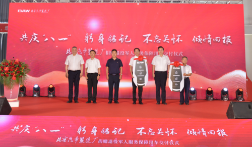 7月28日,北京汽車制造廠在青島總部基地隆重舉行“共慶‘八一’,躬身銘記,不忘關(guān)懷,傾情回報”捐贈退伍軍人服務(wù)保障用車交付儀式,以實際行動做出擁軍表率,為建軍96周年獻禮。原空軍指揮學院副院長朱和平少將、中國退役軍人就業(yè)創(chuàng)業(yè)服務(wù)促進會理事長王義少將、中國退役軍人就業(yè)創(chuàng)業(yè)服務(wù)促進會常務(wù)副理事長林崗少將、中國汽車工業(yè)協(xié)會常務(wù)副會長兼秘書長付炳鋒、山東省退役軍人事務(wù)廳副廳長劉興磊以及各界領(lǐng)導(dǎo)嘉賓共計200余人出席了本次儀式,北京汽車制造廠董事長陸付軍在現(xiàn)場遞交了此次捐贈的BAW卡路里皮卡新車鑰匙。